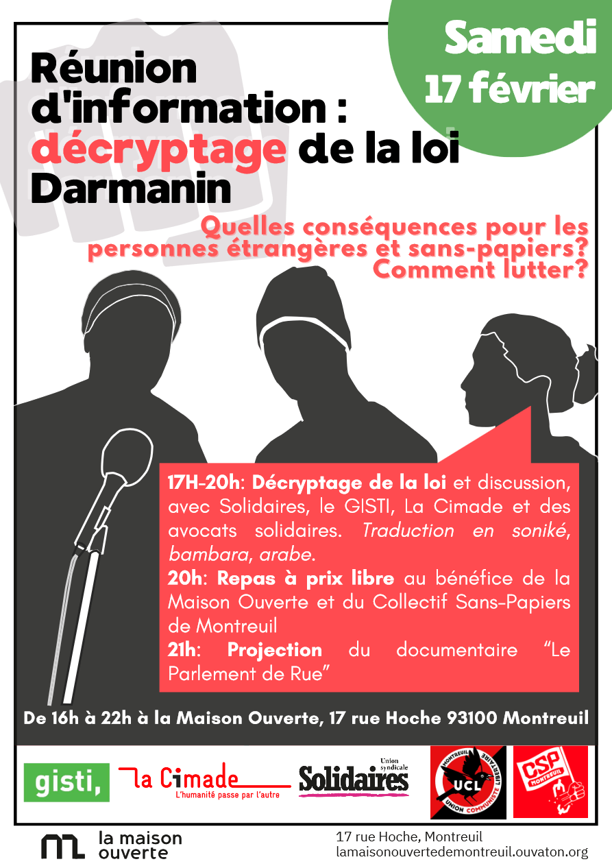 S’informer pour mieux lutter ! Invitation à la réunion d’information collective de Montreuil : décryptage de la loi Darmanin